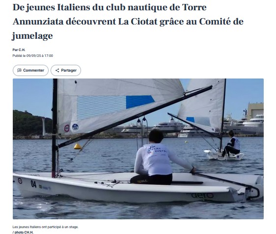De jeunes Italiens du club nautique de Torre Annunziata découvrent La Ciotat grâce au Comité de jumelage (La Provence, 9 septembre 2025)